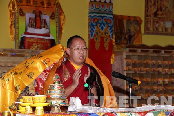 夏日草原的阳光下,班禅大师在贡萨寺准备的华帐宝座上进行讲经和灌顶,同时大师还从佛法的角度对僧人和群众进行了遵纪守法、团结互助、积极改善生活、改正恶习、维护民族团结和社会和谐等方面的教诲。