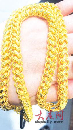 可3条项链男子都表示不满意,这期间还试戴了一条80克的黄金项链。