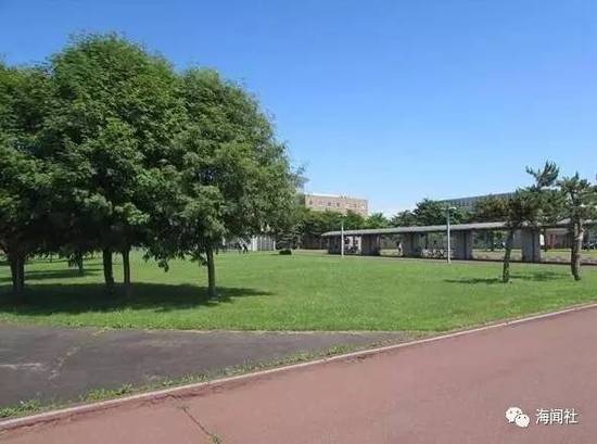 一行人在公路上,眺望了占地15公顷的苫小牧驹泽大学,看到了校园和棒球场。