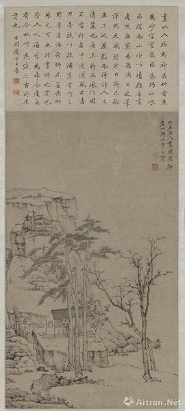 因为髡残这个人性格原因,很多僧人对他不是特别好,尤其是晚年惹怒了别人,就有人把他的僧房给烧了,他的画存世很少。画这幅画时,作者时年54岁。