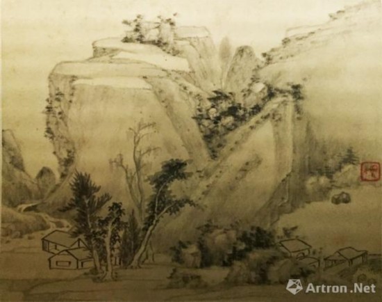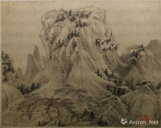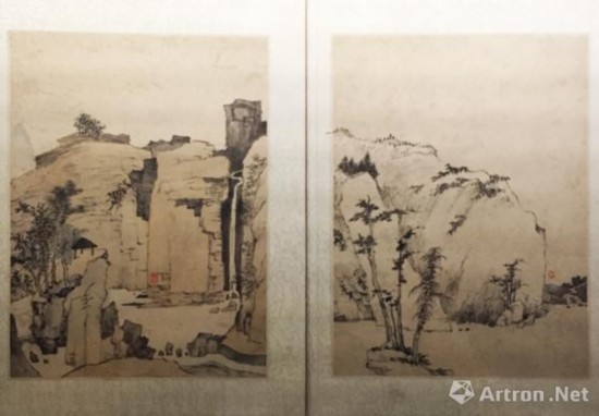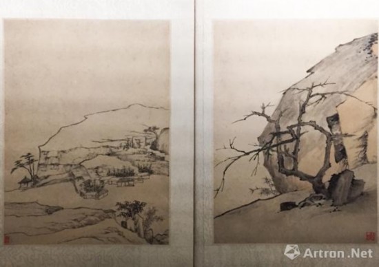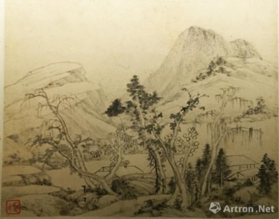 张恂善于画山水,墨法苍劲浑厚,别具古淡天然之致。墨笔绘山水十二开,多以干笔淡墨皴擦,构图脱俗清幽。