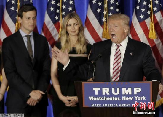当地时间1月9日,特朗普宣布,任命其长女伊万卡的丈夫贾里德·库什纳为白宫高级顾问。特朗普说,这一职位将是政府中“一个关键的领导角色”。图为2016年6月7日贾里德·库什纳(后排左)与伊万卡(后排右)在美国纽约出席特朗普竞选活动的资料照片。