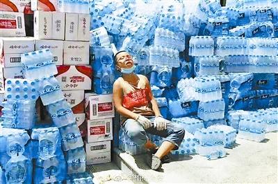 北青报:你睡在矿泉水“山”旁的那个照片,引起很多人关注。