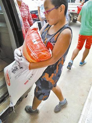 对此,梅亚丽说,参与救灾是儿子主动提议的。放暑假之后,他自己要求去救灾的,从7月28日一直到今天,没断过,通常一天要‘工作’将近10小时?!拔胰プ鲋驹刚呋故侵遣┒钡?,他比我强。洪灾之后,他说想做一点力所能及的事。现在主要是帮忙搬米、面、矿泉水,也会在重灾区帮居民铲泥?!闭掌酵希遣┛吹酱蠹以诳渌?,“挺开心的,但是孩子有点害羞,看到自己的照片有点不好意思。”