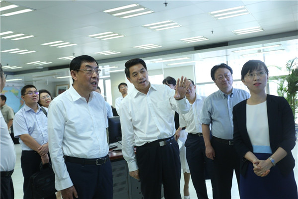马培华视察了国务院抗震救灾指挥部指挥大厅、台网中心新闻发布厅和国家测震台网中心等,详细了解了台网中心大楼减隔震设计,并与大家深入交流。
