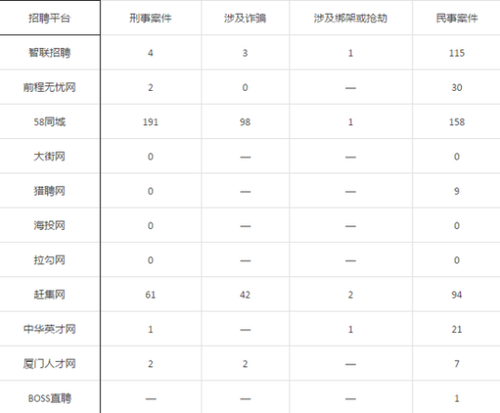 为此,法制晚报·看法记者将目光对准“虚假招聘”,从我国几家最大的线上招聘平台出发,分析其涉及的刑事案件特点及危害。