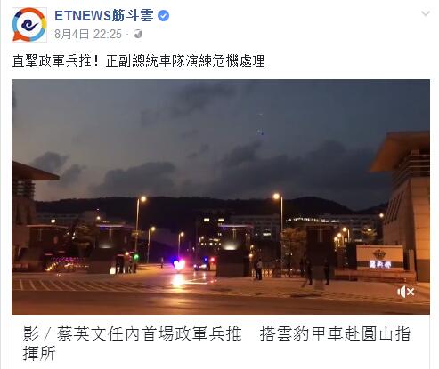 果不其然,在昨晚的报道画面中,又出现了“蔡英文车队演练危机处理”等字眼。
