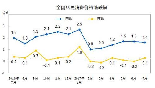 统计局:7月份全国居民消费价格同比上涨1.4%