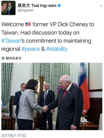 蔡英文见切尼推特截图