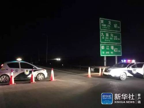 在国道213线若尔盖境内,若尔盖县交警对国道213线进行管制,控制社会车辆驶往九寨沟方向,为救援车辆让路。新华社记者 范培珅 摄
