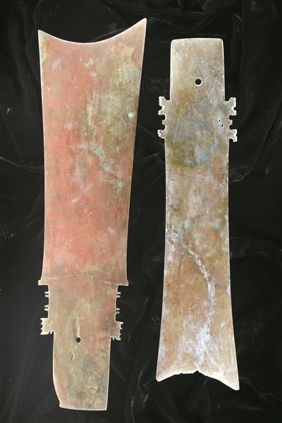 在二里头文化二期,开始出现柄形器,三期则有各类大型有刃礼器出现。这些带刃的礼玉,都与其本来的装柄方式和用途无关,而是表现贵族的权威,作为在宫廷上昭示君臣关系的“玉圭”或“笏”来使用的。