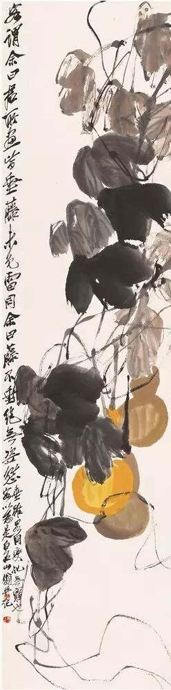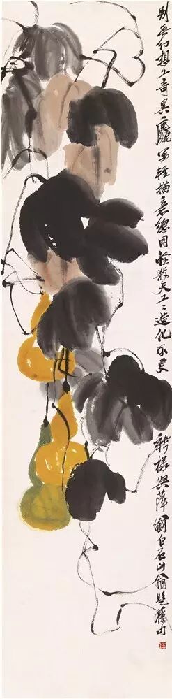 图9 葫芦 齐白石 纸本设色 133.5×33.5cm 无年款 北京画院藏