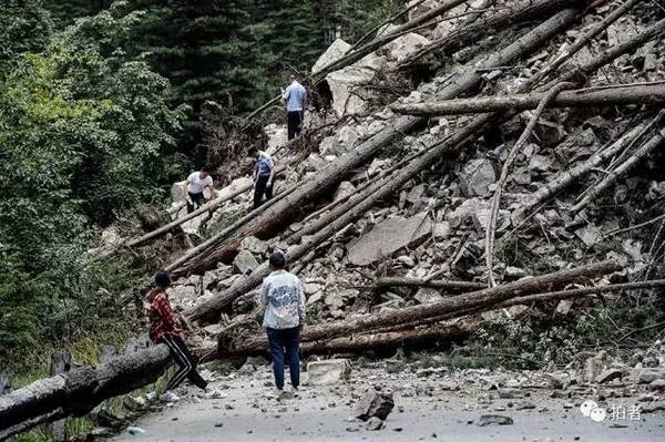 下图为诺日朗瀑布往熊猫海方向的道路被塌方阻断,车辆无法通行↓