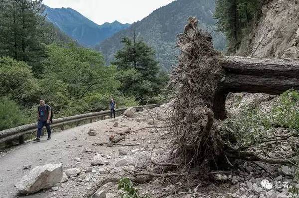 ▲ 8月10日,九寨沟景区S301省道,武警交通正在指挥单向放行,通过坍塌严重的危险路段时,很多人快速跑步前行。