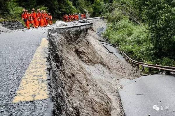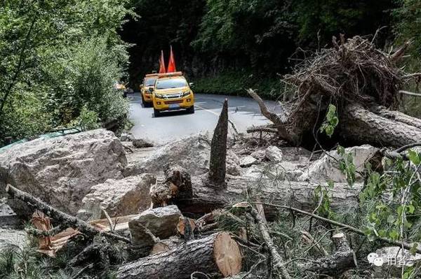 下图为诺日朗瀑布往熊猫海方向的道路被塌方阻断,车辆无法通行↓