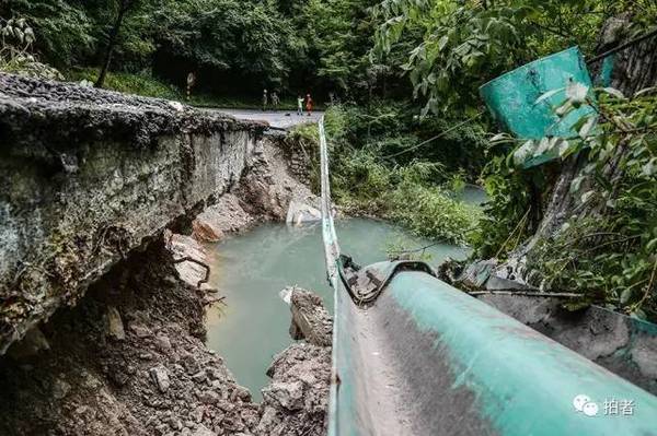 而如今,地震导致诺日朗瀑布附近一段道路坍塌,坍塌的一侧路面落入下方的海子里;在其上游一段路面,带有熊猫形象的一段栏杆被塌方落石砸毁↓