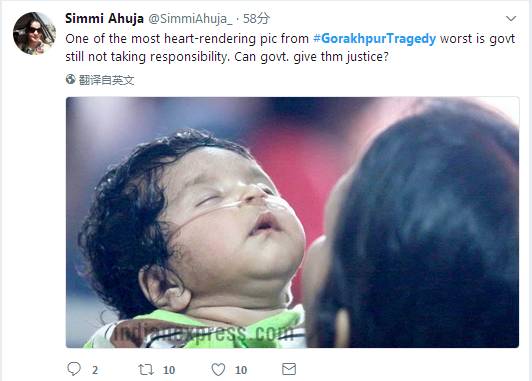 网友Simmi Ahuja?:最让人糟心的图片之一,(莫迪)政府仍然不负责任。他们会给死去的孩子们公正么?