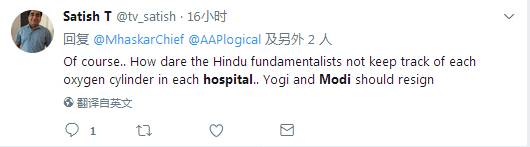 网友Satish T?:当然,这些原教旨主义的印度教徒胆子大到可以对医院的氧气瓶不管不顾的……瑜伽莫迪应该辞职!
