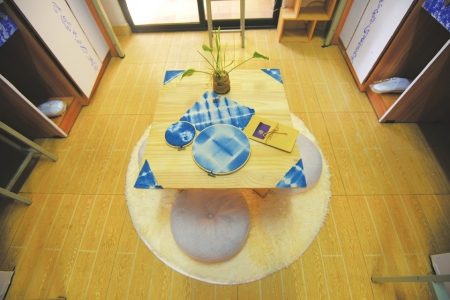 “程序上,与住旅馆或者宾馆一样?!毖盍峤涣?00元押金,领到了一张校园一卡通,住进了101房间。她的房间不大,两侧各摆放着两架高低床,整整齐齐,地面铺陈了一小块四四方方的民族风地毯,就连洁白的被子上也绣上了民族风的花纹。
