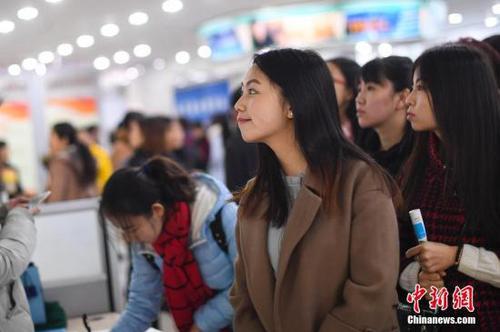 3月3日,华南农业大学校园招聘会上,大学生在挑选心仪的职位(图文无关)。中新社记者 陈骥旻 摄