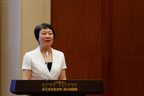 图为:杭州市委常委、统战部长佟桂莉上台致辞。王远