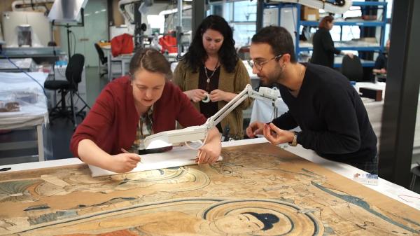在第四集中,修复师们和博物馆科学部的员工一起分析了刺绣中的染料。