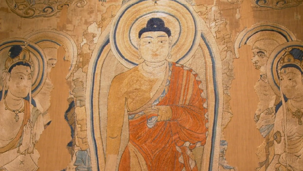 敦煌藏经洞出土的这一唐代巨幅刺绣是英籍匈牙利探险家与学者斯坦因盗买带出中国,于1919年入藏大英博物馆。