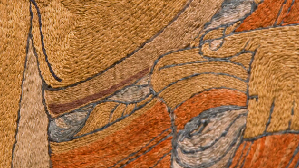 目前,大英博物馆高级织物修复师Monique和织物修复师Hannah在直播时提出,研究刺绣中的染料在修复过程中有着重要的作用。她们怀疑今天我们所看到的这幅刺绣,在某些区域的染料被改变过,有些区域曾出现大面积褪色。她们认为,通过一些染料的分析,也许可以帮助我们发现其中的一些改变,比如现在所能看到的浅褐色部分原本也许是浅红色的。