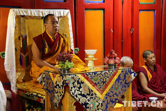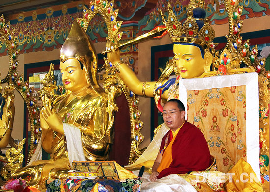 班禅大师在青海省藏语系佛学院讲经。