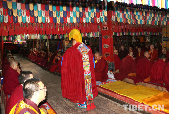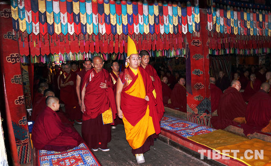 班禅大师步入塔尔寺大经堂。