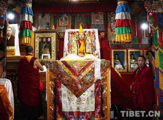 塔尔寺僧人向班禅大师敬献曼扎。