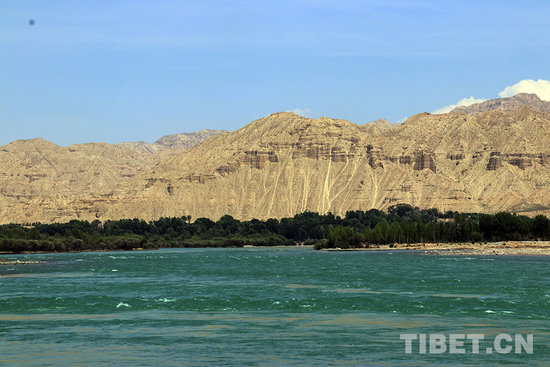 班禅大师一行在贵德县当地干部的陪同下在黄河岸边参观。