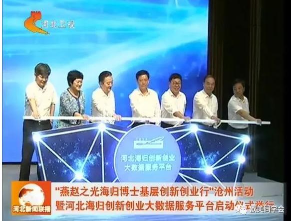 8月9日,“燕赵之光——海归博士基层创新创业行”沧州活动暨河北海归创新创业大数据服务平台启动仪式在沧州国际会议中心隆重举行。全国政协外事委员会副主任、欧美同学会(中国留学人员联谊会)副会长韩方明,河北省委常委、统战部部长高志立出席并致辞。河北省人大常委会副主任、河北欧美同学会会长王刚主持。河北省政府副省长徐建培、省政协副主席曹素华,沧州市委书记杨慧、市长梅世彤等出席启动仪式。46位“千人计划”专家、海归博士,16家特邀企业、123家沧州市企业代表参会。