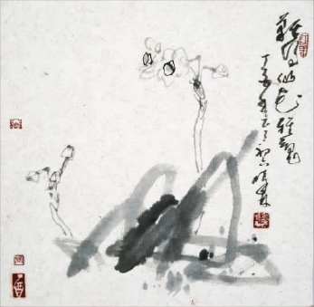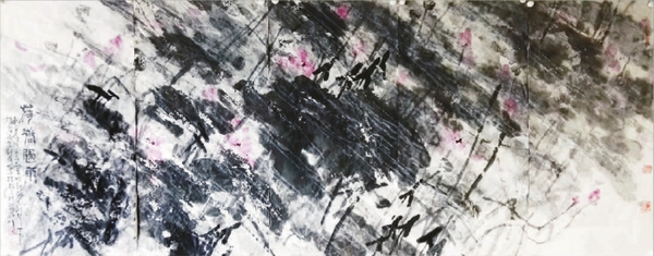 刘曦林认为写生是为了从中找到绘画的方法,是认识生活和总结生活的过程;既要仔细观察写生对象结构,掌握其生长规律、习性、时节变化,将结构转化为笔法,又要从中寻找文思、寻找诗意,把自然信息向艺术信息转换。“同样的景物在不同人的笔下都是情调形态各异的。最近我正在创作一幅画,前几天下大雨,大雨中的莲花和风雨搏斗,我看到了一种壮美,这是一场美的拼杀,莲塘过雨给人以美的享受,而当遇到狂风暴雨的时候寄寓的又是另外一种情思,几个花瓣吹落了也好,枝头被折断了也好,它是不屈的,我在创作中用较重的笔墨营造黑云压城的氛围,将莲花这种弯而不折、折而不断的抗争精神描绘出来。在这里,我想寄托一种情感,我对莲花的情感,这里面也隐藏着一个‘文’字。 ”刘曦林在石鲁“把山水当作人来画”的主张基础上,又提出了把花鸟当作人来画,把人当作人来画,他认为人物画就是造型艺术的人学,通过画笔去研究人,和山水、花鸟一样,均是以己之心去感人之心、感物之心。由此,画家从于心,好画源于心,即“中得心源” ,这是亘古不变的艺术创作规律。