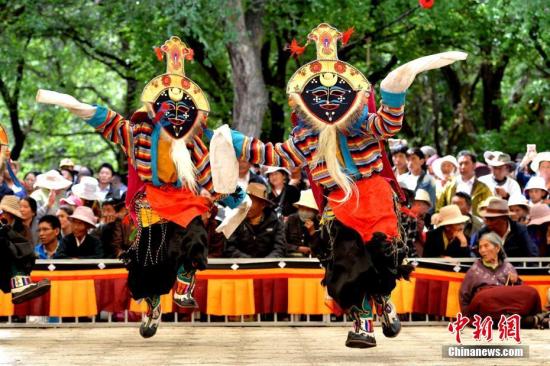 藏戏表演吸引大量民众观看(资料图)。 中新社记者 李林 摄