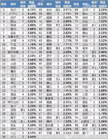 以上是全球租金回报率最高的几个城市。那么,中国主要城市的租金回报率是多少呢?