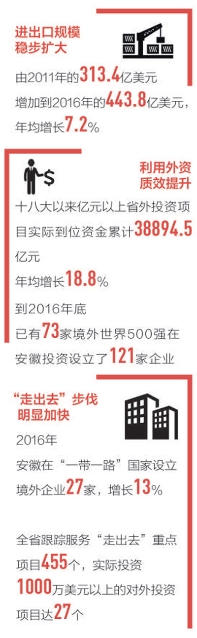 安徽省发改委相关负责人表示,未来5年,安徽将持续高水平推进“引进来”“走出去”。一方面坚持挑商选资、招才引智,重点引进在全球产业链、价值链处于中高端的产业;一方面紧跟国家战略谋划项目,推动优势产能和装备制造走出去,打造一批具有国际竞争力和市场开拓力的骨干企业。