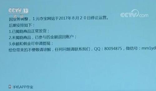 打着创新商业模式的“一元购”迎来了监管部门的业务定性。在之前最为火爆的1元云购平台,目前网站的醒目位置提示,该网站已经停止运营,商品也都已经全部下架。客服电话也无人接听。网易一元夺宝的网站也已经无法打开,客服电话也成了空号。调查发现,此前火热的一元购平台基本都已经停运或者无法联系。