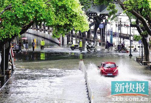 受天文大潮影响,广州市荔湾区、海珠区昨天不少路段出现水浸。