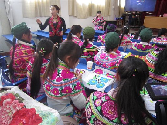 罗珺还与当地的职业学校合作,将彝绣文化带进课堂,不仅传承、?;ち艘托逦幕?,同时也培养了年轻学生对彝族文化的认同感,培养出一批批熟练掌握彝族刺绣技艺的人才。