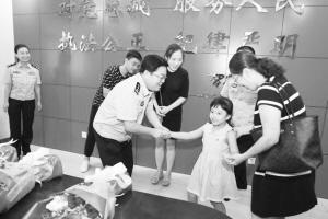 8月23日15时30分,小女孩和她的妈妈、姥姥一起来到市公安局交管局会议室。一进屋,工作人员和前来采访的众多省会媒体记者就给女孩送上了热烈的掌声,周文华还给这名小女孩送上鲜花。