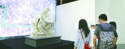 观众在现场参观米开朗基罗雕塑复刻作品。