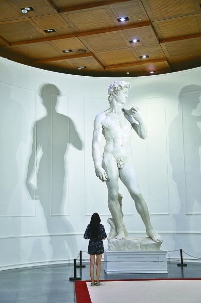 过了一会儿,他给记者发来微信:“我刚才说错了,看到后面感觉太好了?!闭固镒?,可以看到米开朗基罗《创世纪》湿壁画的临摹作品、古纸复制素描,以及《圣殇》《酒神》等翻模雕塑,其中尤为醒目的《大卫》雕像为世界上仅存三件之一的1∶1原模复刻。这位学了三年雕塑专业的大学生说:“近距离观察,能看清线条的作用、素描的节奏,看清雕塑上的起伏和深度,这是靠图片或讲解体会不到的。我觉得原作也好,复制品也好,其根本价值在于内容,不必太过纠结于形式?!?/p>