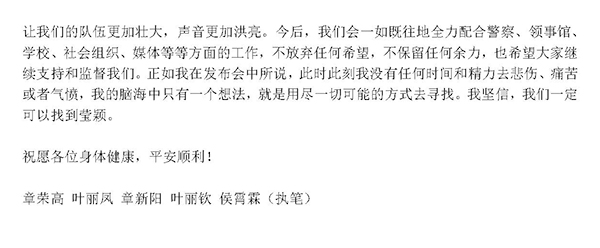 章莹颖家人发公开信列明捐款用途 并回应质疑