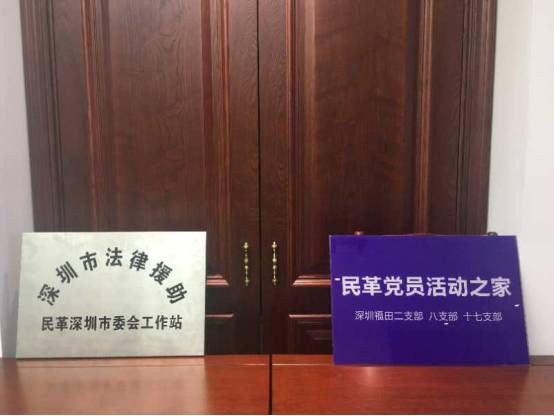 围绕社会法制这一特色优势,深圳民革开展了一系列大动作:2014年4月,民革深圳市委会成立民革广东诚公律师事务所(福田十七)支部;同年8月,深圳民革法律援助中心成立;2015年7月,深圳市司法局、深圳市法律援助处驻民革深圳市委会法律援助工作站挂牌。