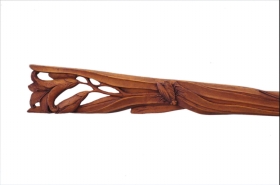清黄杨木镂雕兰竹纹折扇骨,雕了一只蝉,清雅又富于想象力。