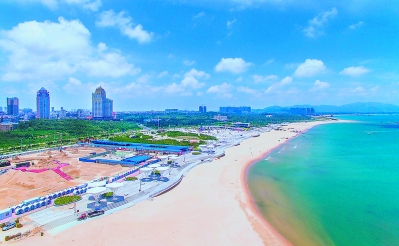 建设国际旅游岛,生态环境最为重要。为此,实验区围绕“努力构建人居环境优美、生态环境良性循环的新兴海岛城市”要求,构建“绿屏绕城、内湾筑城、山海融城”的滨海新城,全力打造“平潭蓝”。