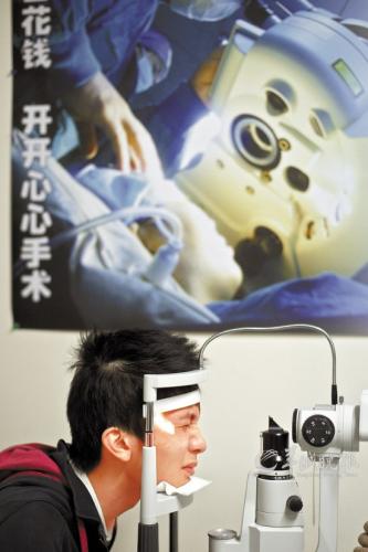 资料图:医生为近视患者做手术前的检查。图片来源:羊城晚报