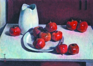 水彩画在中国属于小画种。上世纪五六十年代,美术学院里有着“大油画,小水彩”之说。全国美展虽然常设水彩、水粉一项,也属于数量、地位都比较次要小门类。但在今年广东美术百年大展上,入选为21位已故大家之一的王肇民,其水彩画作品却有着穿透历史烟尘的力量。无论是在中国美术馆还是在广东美术馆,记者三次走进展厅,三次都被他的《荷花玉兰》《刺桐》及《静物——石榴》等羁绊住脚步。站在画前凝望,静默中油然而生一种感动,似乎能够接收到画面上散发出的精神原力。