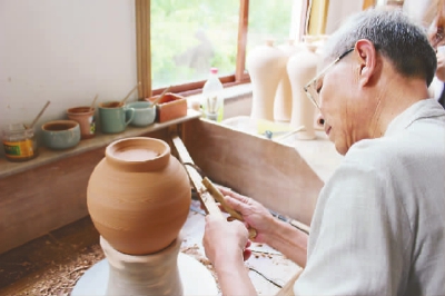 中国青瓷大师、“龙泉青瓷烧制技艺”传承人陈坛根在直播现场展示龙泉青瓷跳刀工艺 彭扬 摄